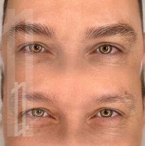 Creemos indispensable mantener la esencia masculina de unas cejas, una perfecta imperfección, que pase inadvertida entre las miradas ajenas. Se utilizará una paleta de distintos colores para conseguir tridimensionalidad en el resultado. Dibujaremos pequeños pelos o pelusas que añadan “rudeza y naturalidad” a las cejas.